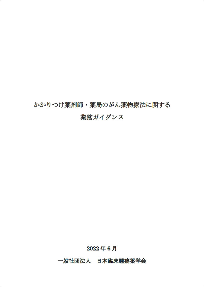抗悪性腫瘍薬を頻繁に受け付けていない保険薬局の薬剤師が、適切に業務を遂行できるための一助として「かかりつけ薬剤師・薬局におけるがん薬物療法に関するガイダンス」を作成しました。